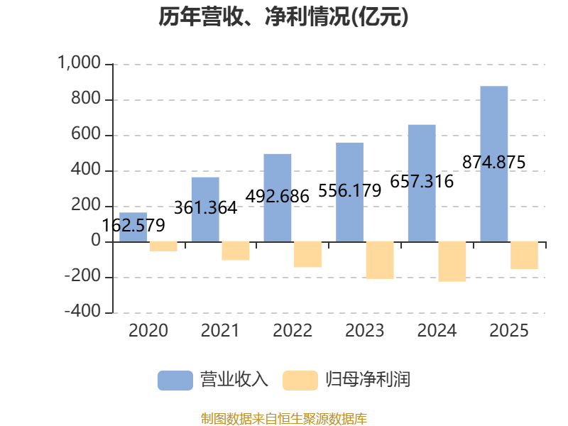 中证智能财讯蔚来-SW(09866)4月10日披露2025年度报告。报告期内,公司实现营业收入874.88亿元,同比增长33.1%;归母净利润亏损155.71亿元,上年同期亏损226.58亿元;经营活动产生的现金流量净额为29.93亿元,上年同期为-78.49亿元;据报告显示,蔚来-SW基本每股收益为-6.85元,平均净资产收益率为-312.06%。