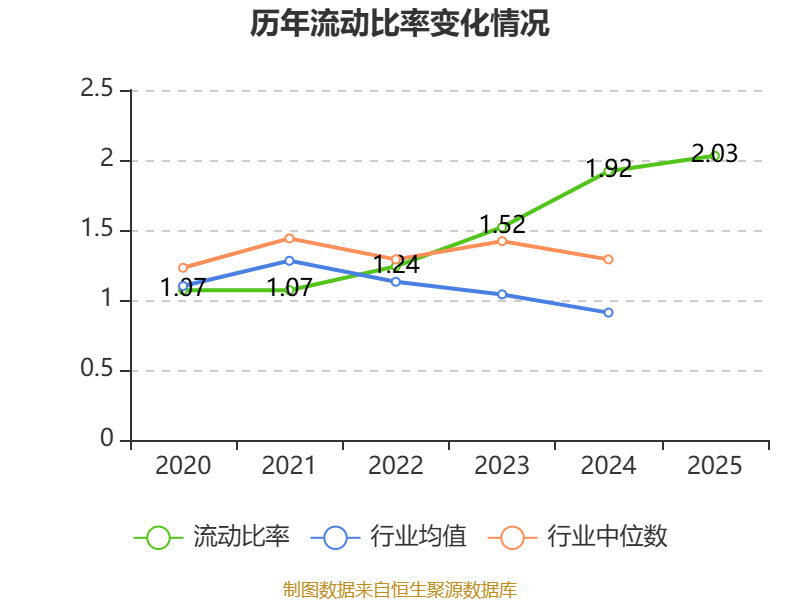 2025年,公司流动比率为2.03,速动比率为1.6。