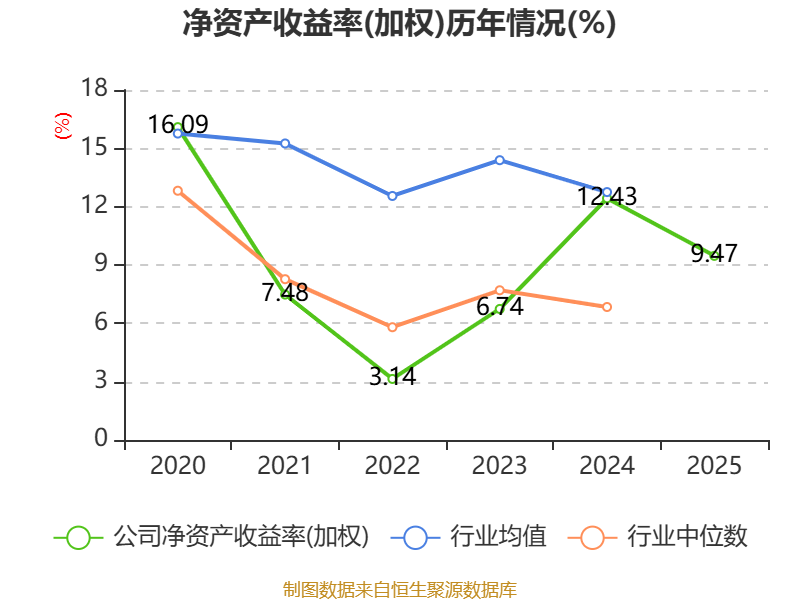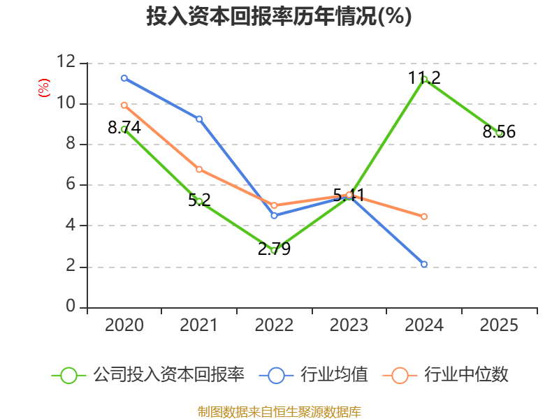 数据显示,2025年公司加权平均净资产收益率为9.47%,较上年同期下降2.96个百分点。公司2025年投入资本回报率为8.56%,较上年同期下降2.64个百分点。
