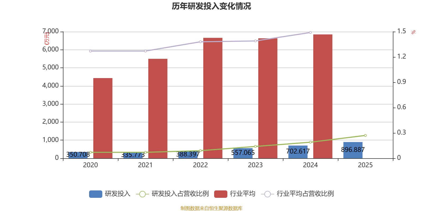 2025年全年,公司研发投入金额为896.89万元,同比增长27.65%;研发投入占营业收入比例为0.27%,相比上年同期上升0.08个百分点。此外,公司全年研发投入资本化率为0%。