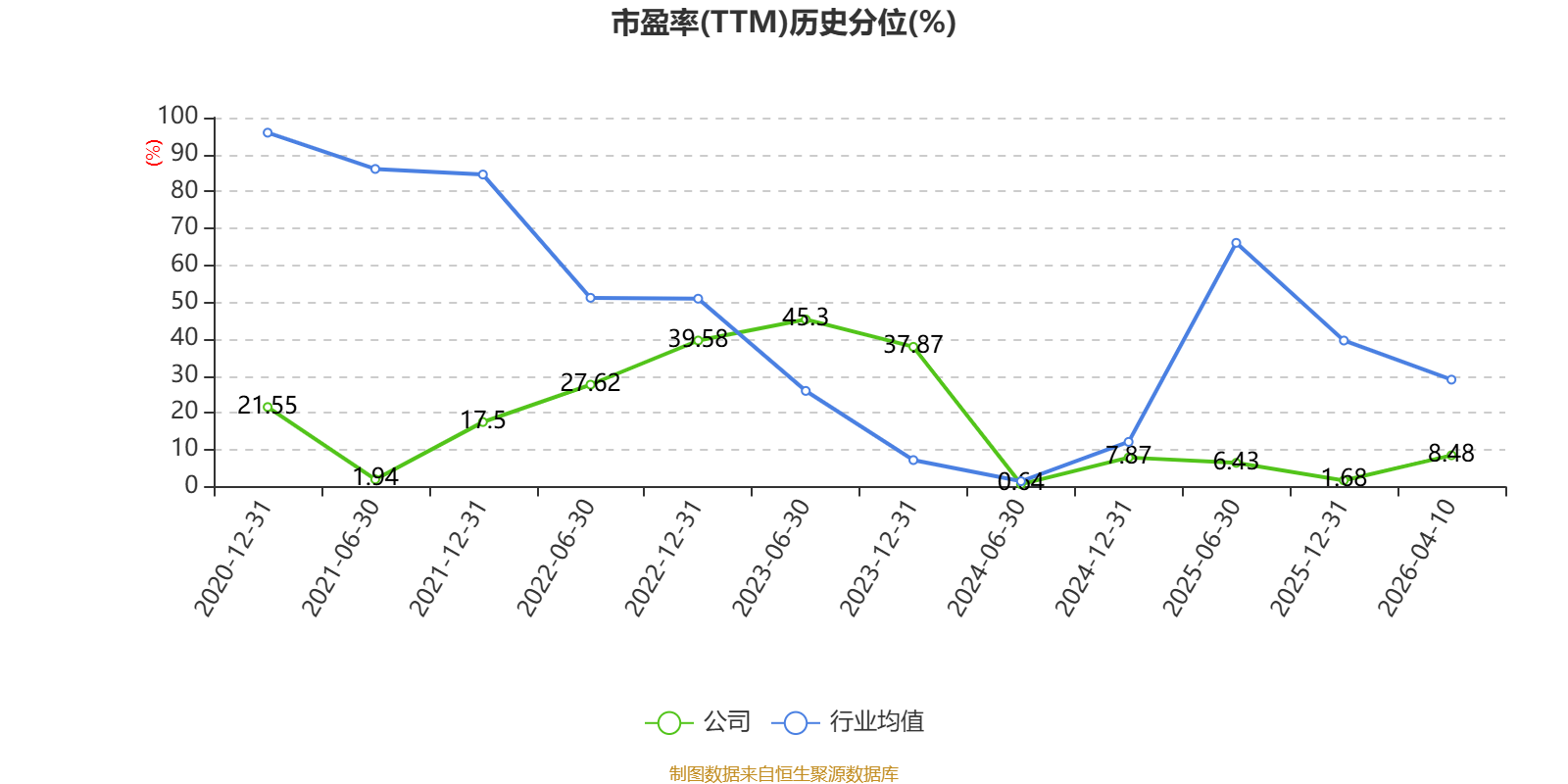 市盈率、市净率为负时,不显示当期分位数,会导致折线图中断。