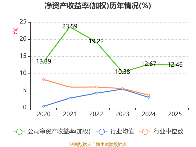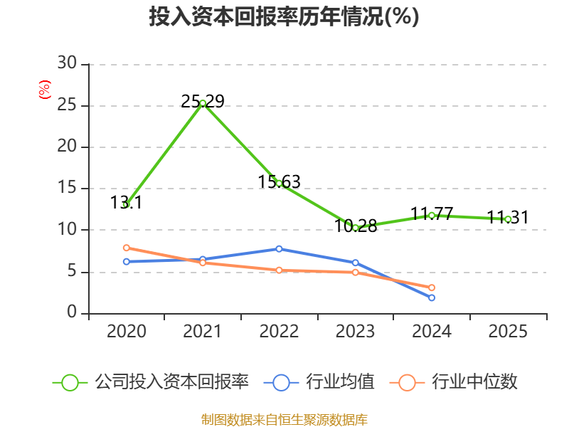 数据显示,2025年公司加权平均净资产收益率为12.46%,较上年同期下降0.21个百分点。公司2025年投入资本回报率为11.31%,较上年同期下降0.46个百分点。