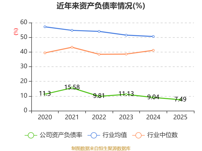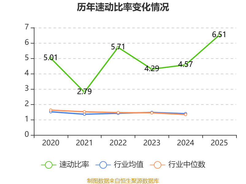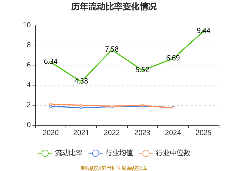 2025年,公司流动比率为9.44,速动比率为6.51。