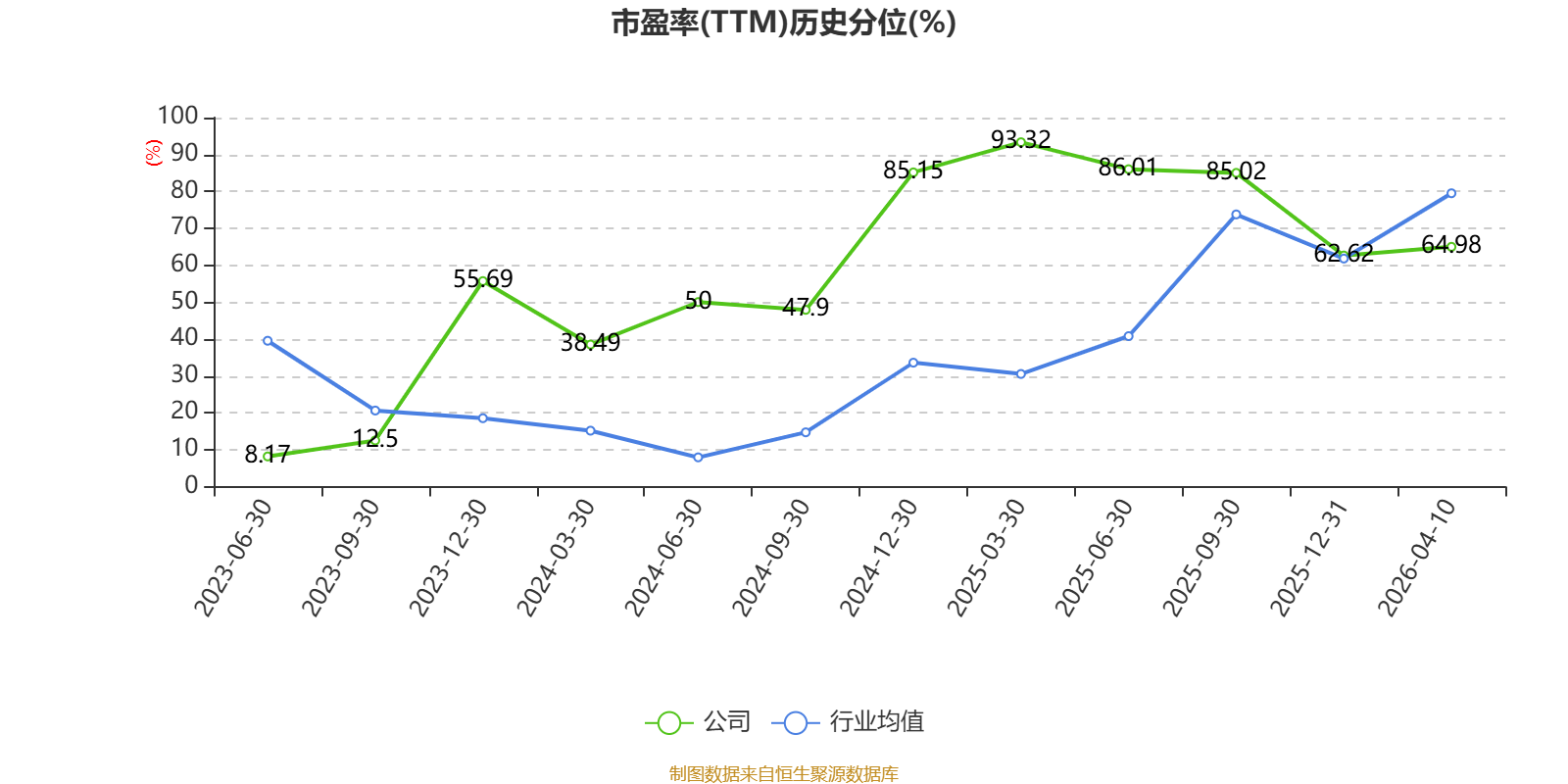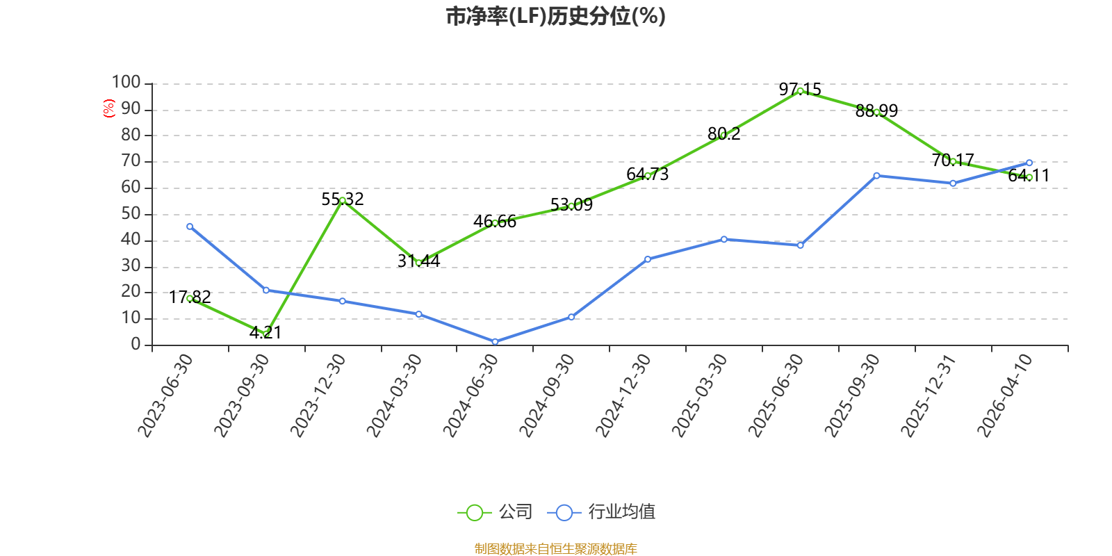 市盈率、市净率为负时,不显示当期分位数,会导致折线图中断。