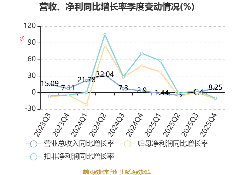 资产重大变化方面,截至2025年末,公司其他非流动资产较上年末减少99.15%,占公司总资产比重下降8.11个百分点;货币资金较上年末增加17.91%,占公司总资产比重上升5.8个百分点;其他流动资产较上年末增加206.37%,占公司总资产比重上升5.47个百分点;交易性金融资产合计较上年末减少100%,占公司总资产比重下降4.01个百分点。