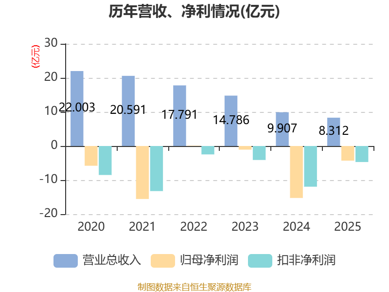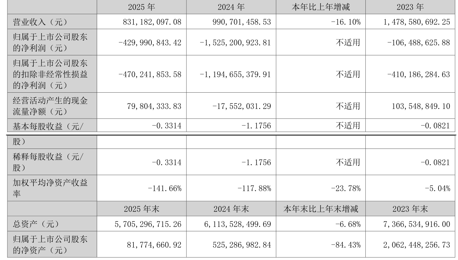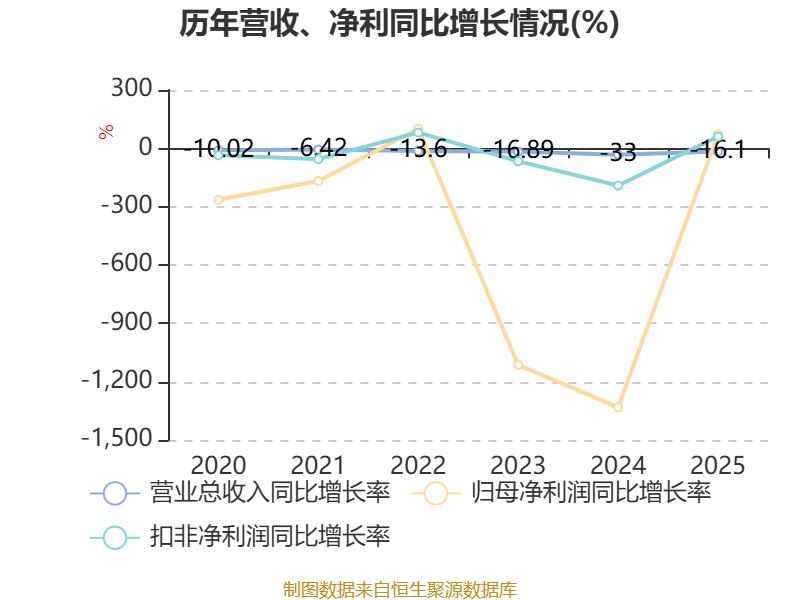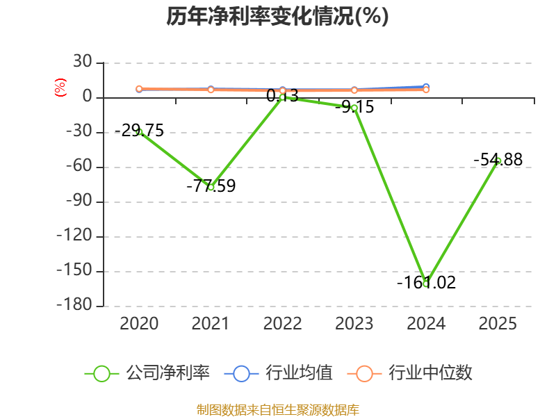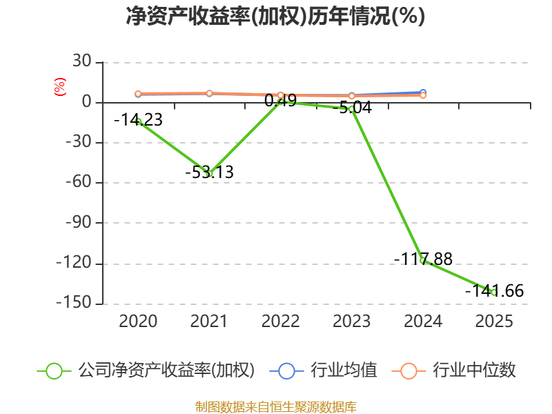数据显示,2025年公司加权平均净资产收益率为-141.66%,较上年同期下降23.78个百分点。公司2025年投入资本回报率为-6.1%,较上年同期上升22.75个百分点。