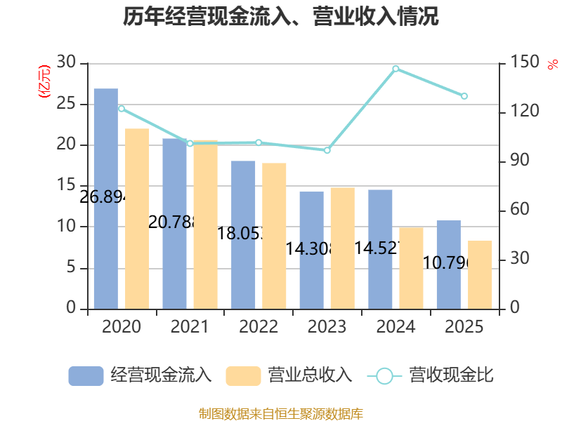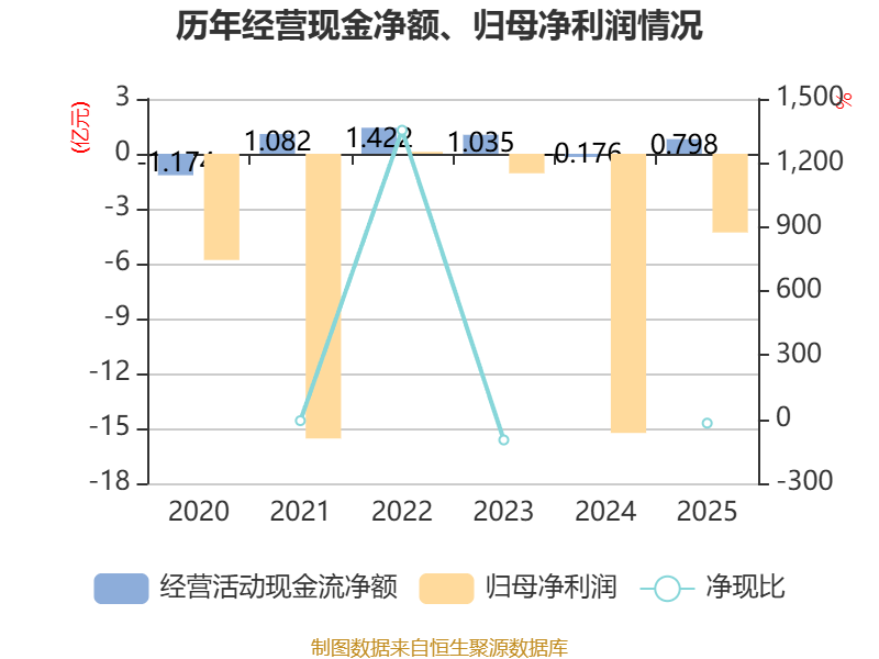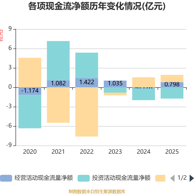 截至2025年,公司经营活动现金流净额为7980.43万元,同比增加9735.64万元;筹资活动现金流净额1.13亿元,同比减少4212.71万元;投资活动现金流净额-1.75亿元,上年同期为-1.81亿元。