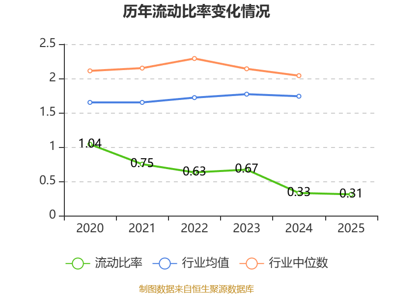 2025年,公司流动比率为0.31,速动比率为0.24。