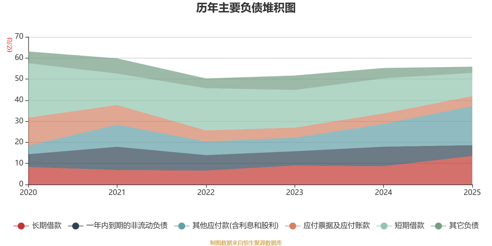 负债重大变化方面,截至2025年末,公司其他应付款(含利息和股利)较上年末增加71.86%,占公司总资产比重上升14.86个百分点;长期借款较上年末增加56.43%,占公司总资产比重上升9.56个百分点;短期借款较上年末减少33.68%,占公司总资产比重下降7.87个百分点;一年内到期的非流动负债较上年末减少44.96%,占公司总资产比重下降6.21个百分点。