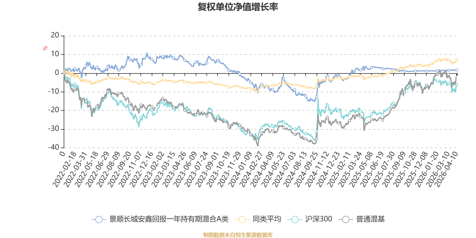 截至4月10日,景顺长城安鑫回报一年持有期混合A类近三个月复权单位净值增长率为0.44%,位于同类可比基金290/629;近半年复权单位净值增长率为0.71%,位于同类可比基金434/629;近一年复权单位净值增长率为-1.58%,位于同类可比基金626/629;近三年复权单位净值增长率为-7.13%,位于同类可比基金580/581。