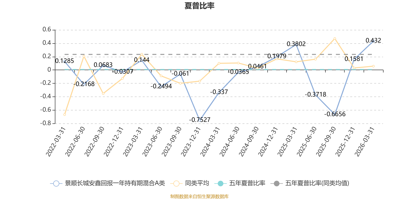 截至3月31日,基金近三年夏普比率为-0.1057,位于同类可比基金505/550。