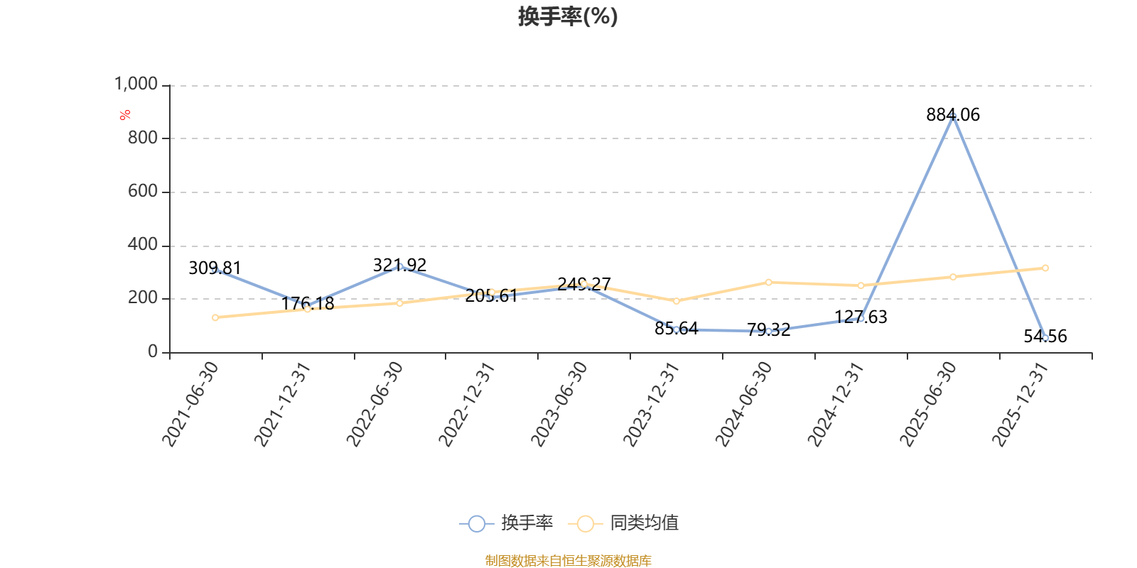 截至2025年12月31日,基金最近一年换手率约888.02%。