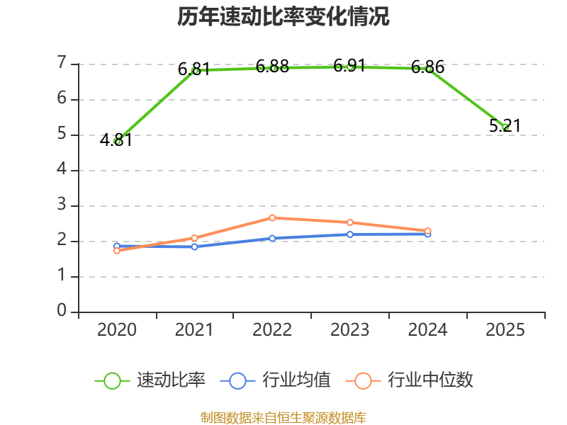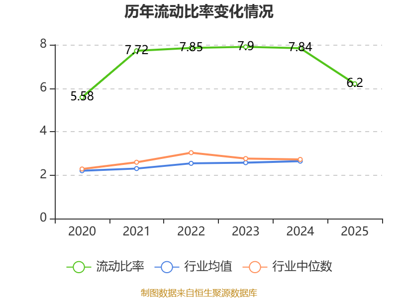 2025年,公司流动比率为6.2,速动比率为5.21。