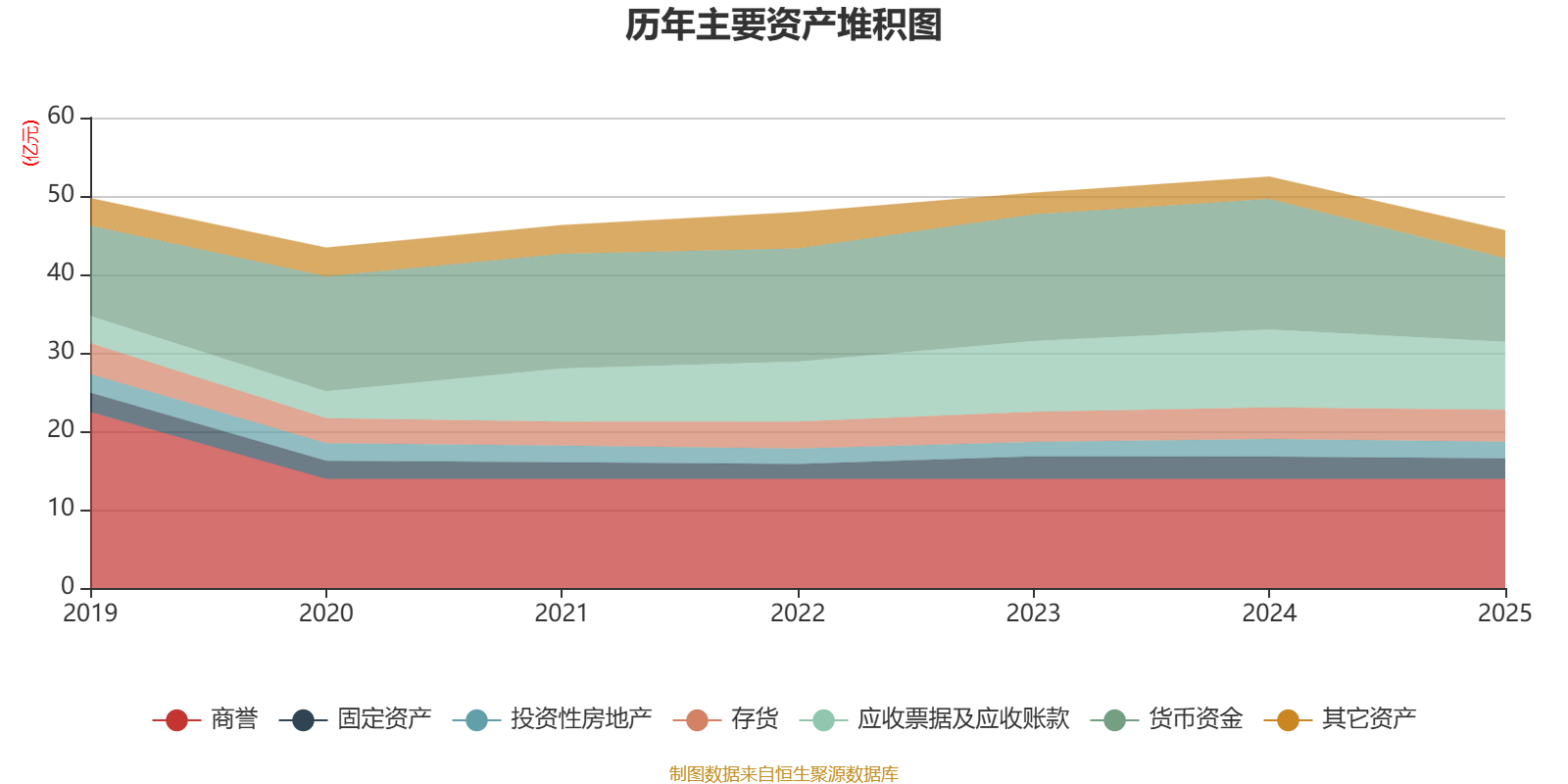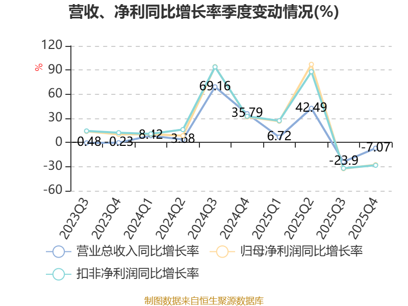 资产重大变化方面,截至2025年末,公司货币资金较上年末减少36.04%,占公司总资产比重下降8.4个百分点;商誉较上年末没有变化,占公司总资产比重上升3.97个百分点;交易性金融资产合计占公司总资产的1.75%,上年末为0;存货较上年末增加1.72%,占公司总资产比重上升1.3个百分点。