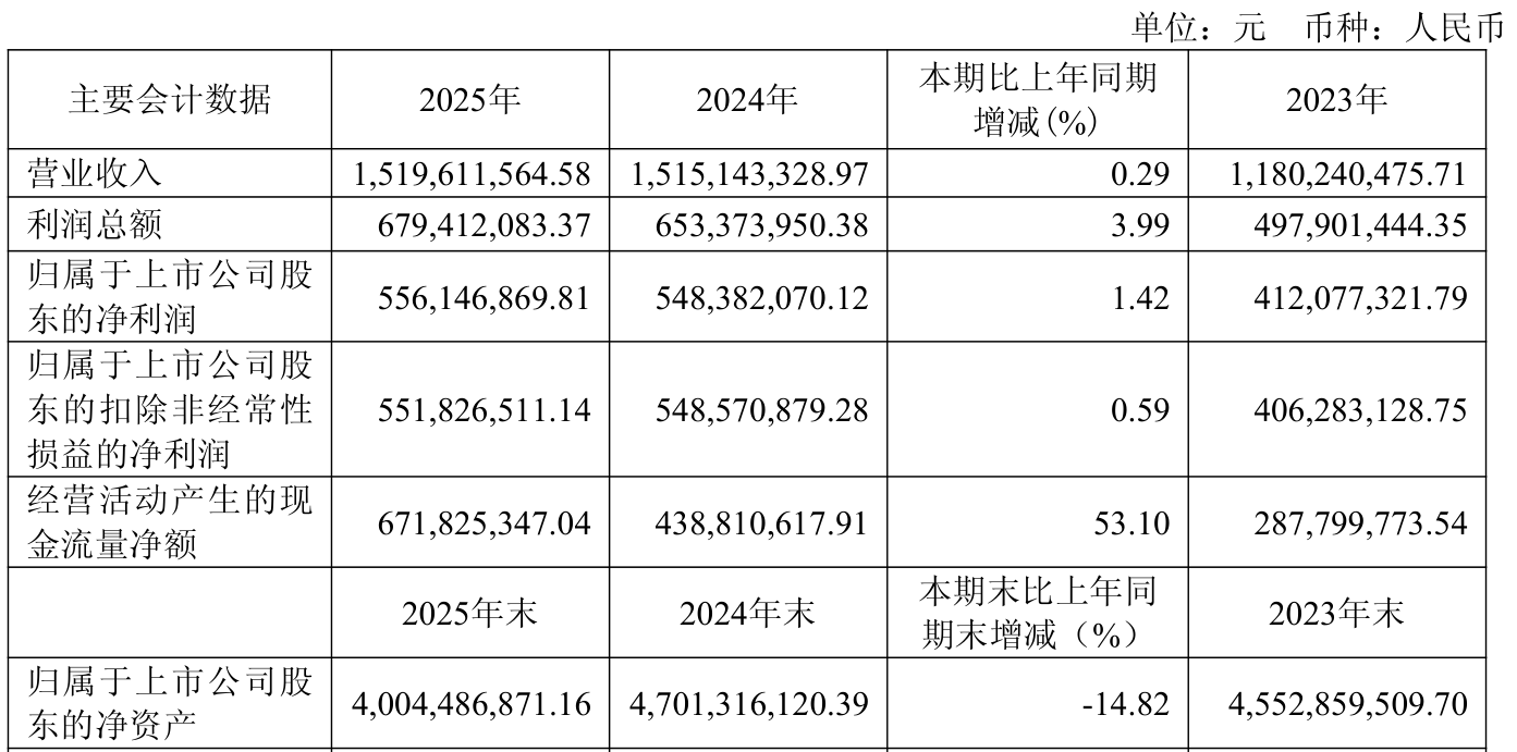 中证智能财讯思维列控(603508)4月11日披露2025年年度报告。2025年,公司实现营业总收入15.2亿元,同比增长0.29%;归母净利润5.56亿元,同比增长1.42%;扣非净利润5.52亿元,同比增长0.59%;经营活动产生的现金流量净额为6.72亿元,同比增长53.10%;报告期内,思维列控基本每股收益为1.46元,加权平均净资产收益率为12.40%。公司2025年度分配预案为:拟向全体股东每10股派现5.245元(含税)。