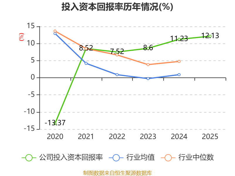 数据显示,2025年公司加权平均净资产收益率为12.4%,较上年同期上升0.63个百分点。公司2025年投入资本回报率为12.13%,较上年同期上升0.9个百分点。