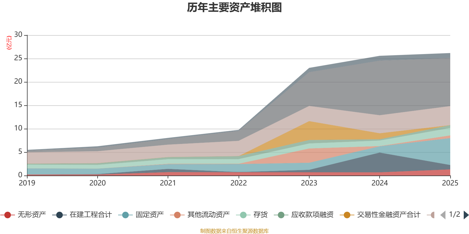 资产重大变化方面,截至2025年末,公司固定资产较上年末增加327.33%,占公司总资产比重上升16.71个百分点;在建工程合计较上年末减少77.93%,占公司总资产比重下降12.97个百分点;货币资金较上年末减少11.97%,占公司总资产比重下降6.38个百分点;交易性金融资产合计较上年末减少100%,占公司总资产比重下降4.95个百分点。