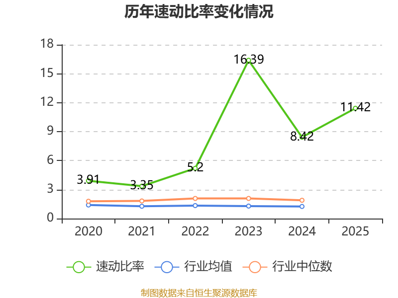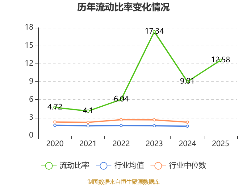 2025年,公司流动比率为12.58,速动比率为11.42。