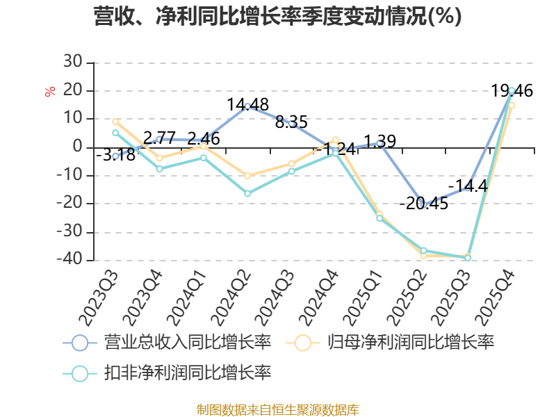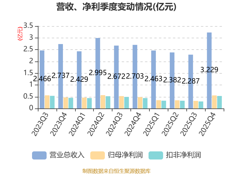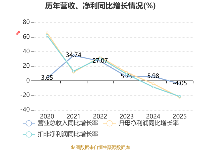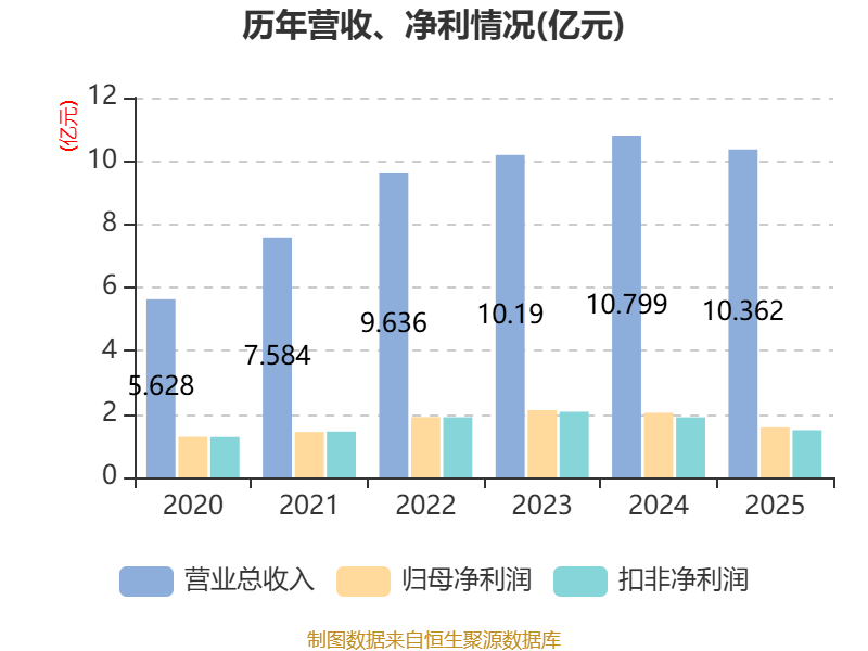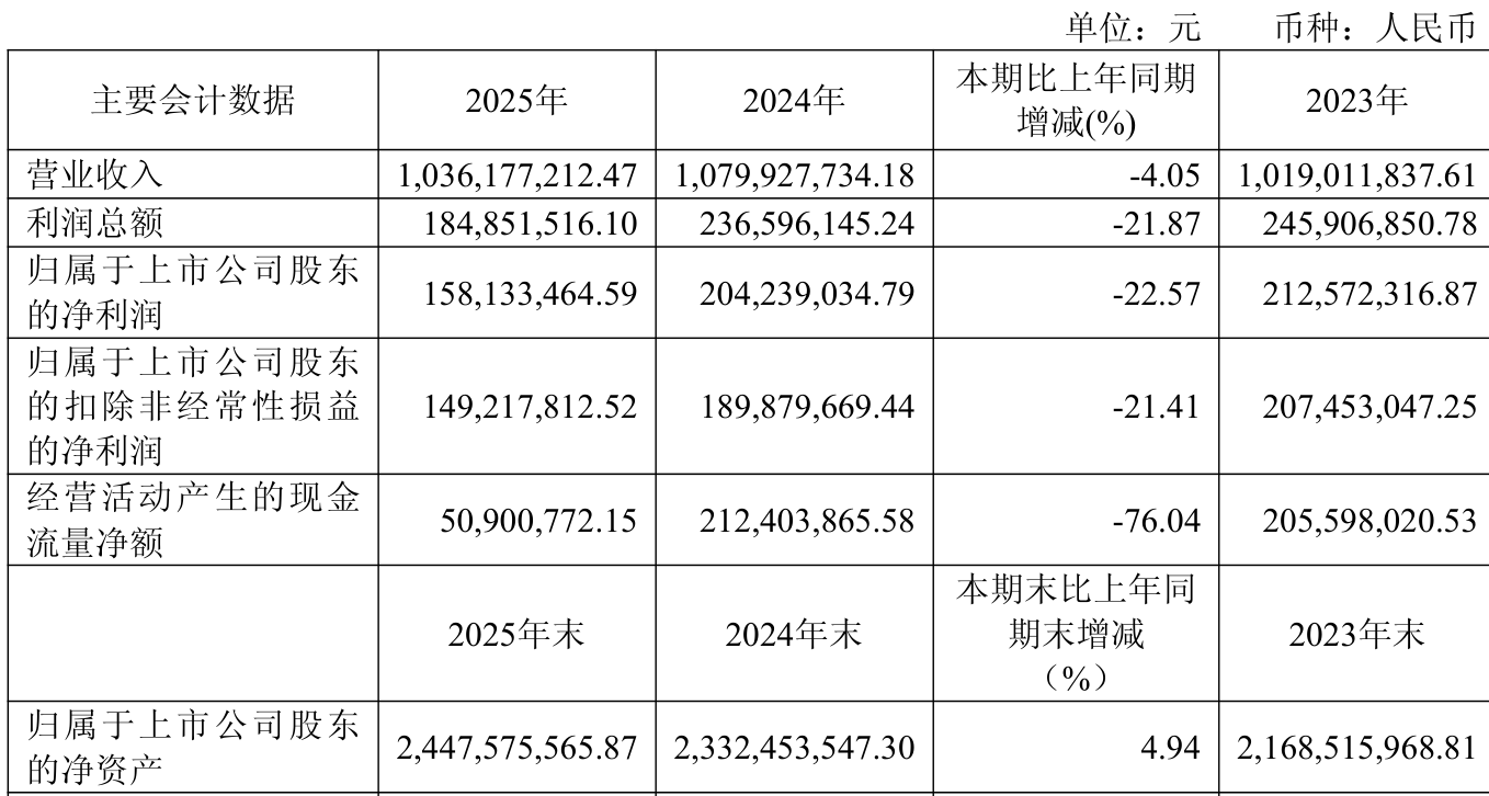 中证智能财讯常青科技(603125)4月11日披露2025年年度报告。2025年,公司实现营业总收入10.36亿元,同比下降4.05%;归母净利润1.58亿元,同比下降22.57%;扣非净利润1.49亿元,同比下降21.41%;经营活动产生的现金流量净额为5090.08万元,同比下降76.04%;报告期内,常青科技基本每股收益为0.39元,加权平均净资产收益率为6.63%。公司2025年度分配预案为:拟向全体股东每10股派现0.4元(含税)。