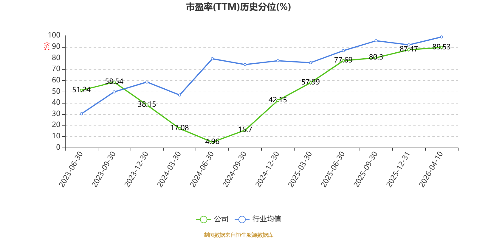 市盈率、市净率为负时,不显示当期分位数,会导致折线图中断。