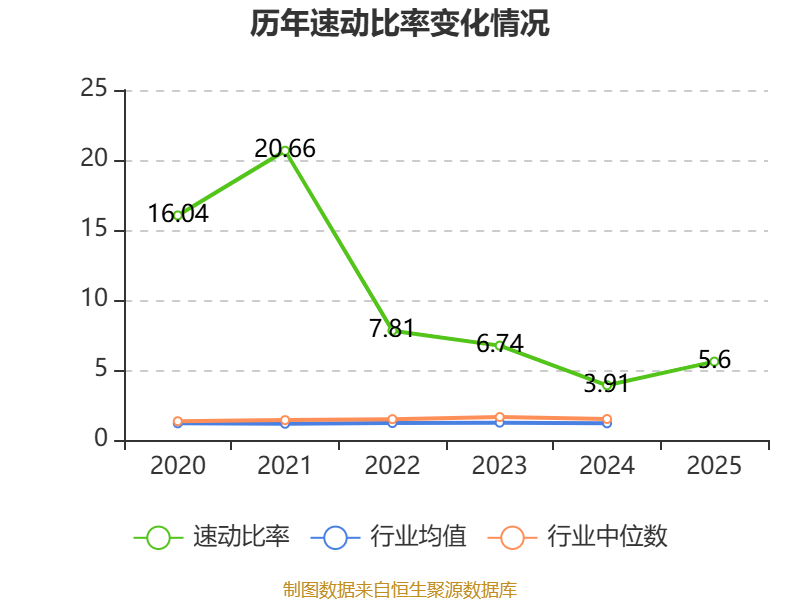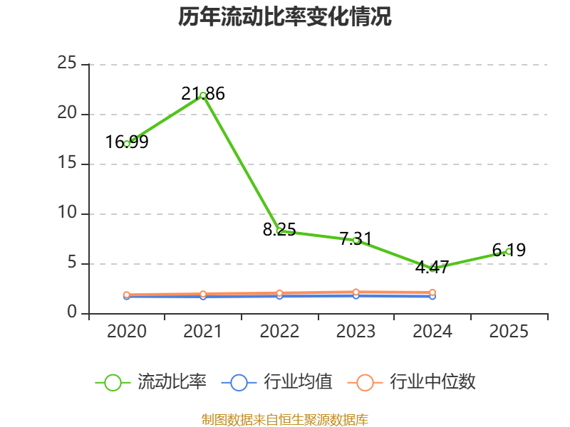 2025年,公司流动比率为6.19,速动比率为5.6。