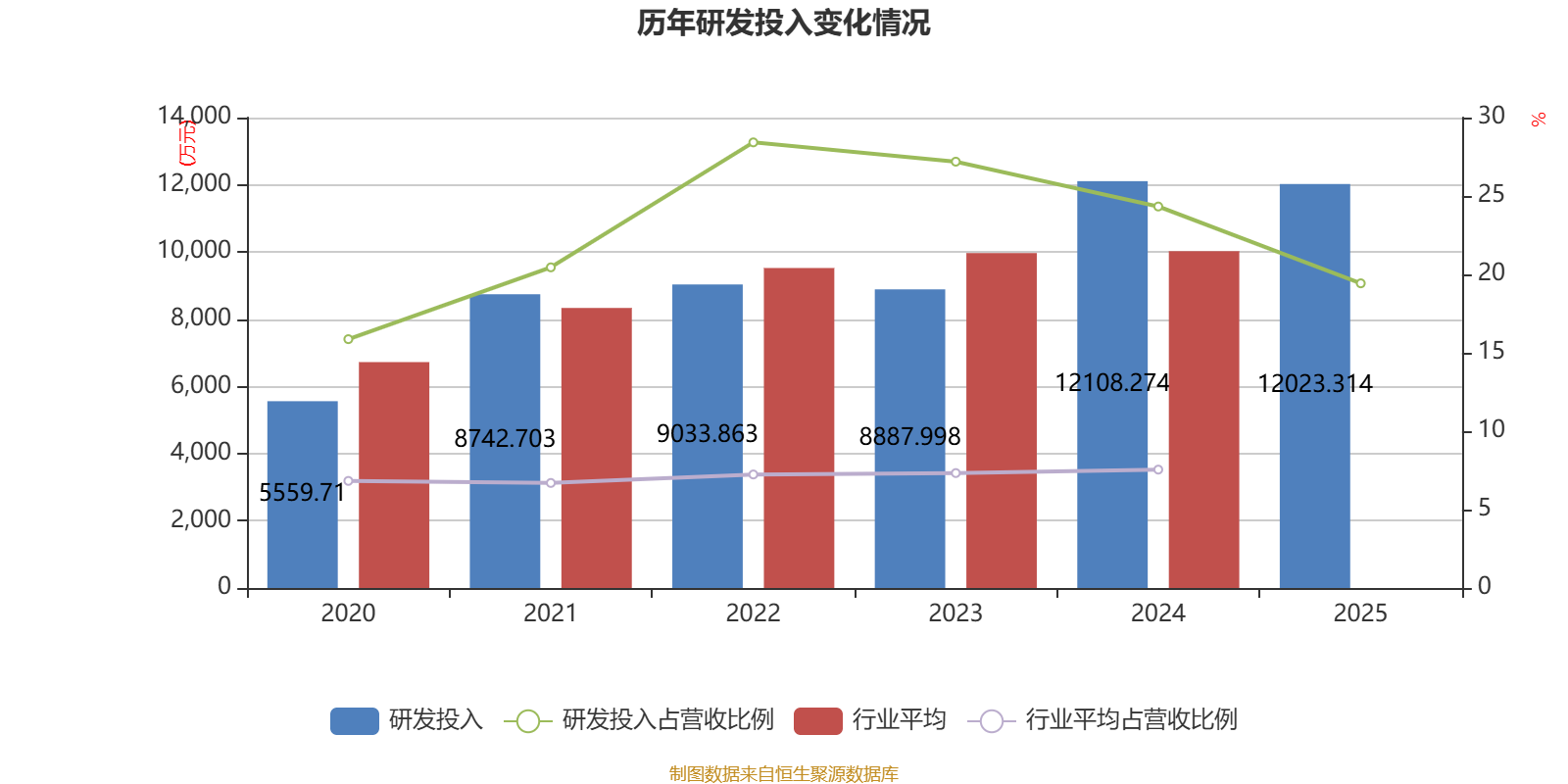 2025年全年,公司研发投入金额为1.2亿元,同比下降0.7%;研发投入占营业收入比例为19.43%,相比上年同期下降4.9个百分点。