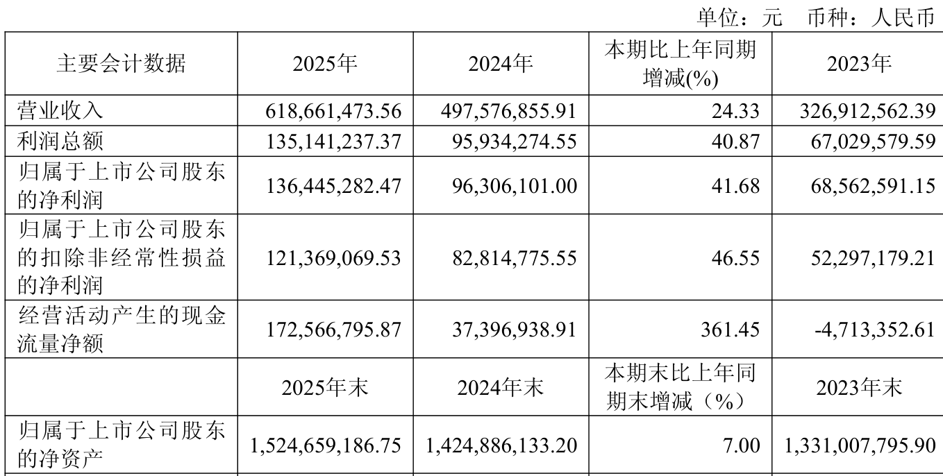 中证智能财讯燕麦科技(688312)4月11日披露2025年年度报告。2025年,公司实现营业总收入6.19亿元,同比增长24.33%;归母净利润1.36亿元,同比增长41.68%;扣非净利润1.21亿元,同比增长46.55%;经营活动产生的现金流量净额为1.73亿元,同比增长361.45%;报告期内,燕麦科技基本每股收益为0.95元,加权平均净资产收益率为9.24%。公司2025年度分配预案为:拟向全体股东每10股派现5.5元(含税)。