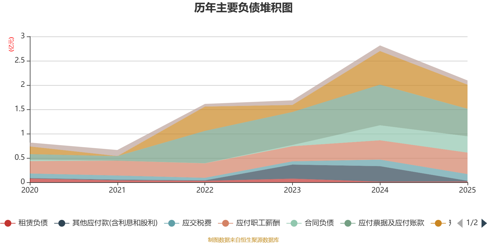 负债重大变化方面,截至2025年末,公司其他应付款(含利息和股利)较上年末减少95.23%,占公司总资产比重下降1.78个百分点;应付票据及应付账款较上年末减少32.25%,占公司总资产比重下降1.63个百分点;短期借款较上年末减少28.08%,占公司总资产比重下降1.18个百分点;应付职工薪酬较上年末增加11.45%,占公司总资产比重上升0.23个百分点。