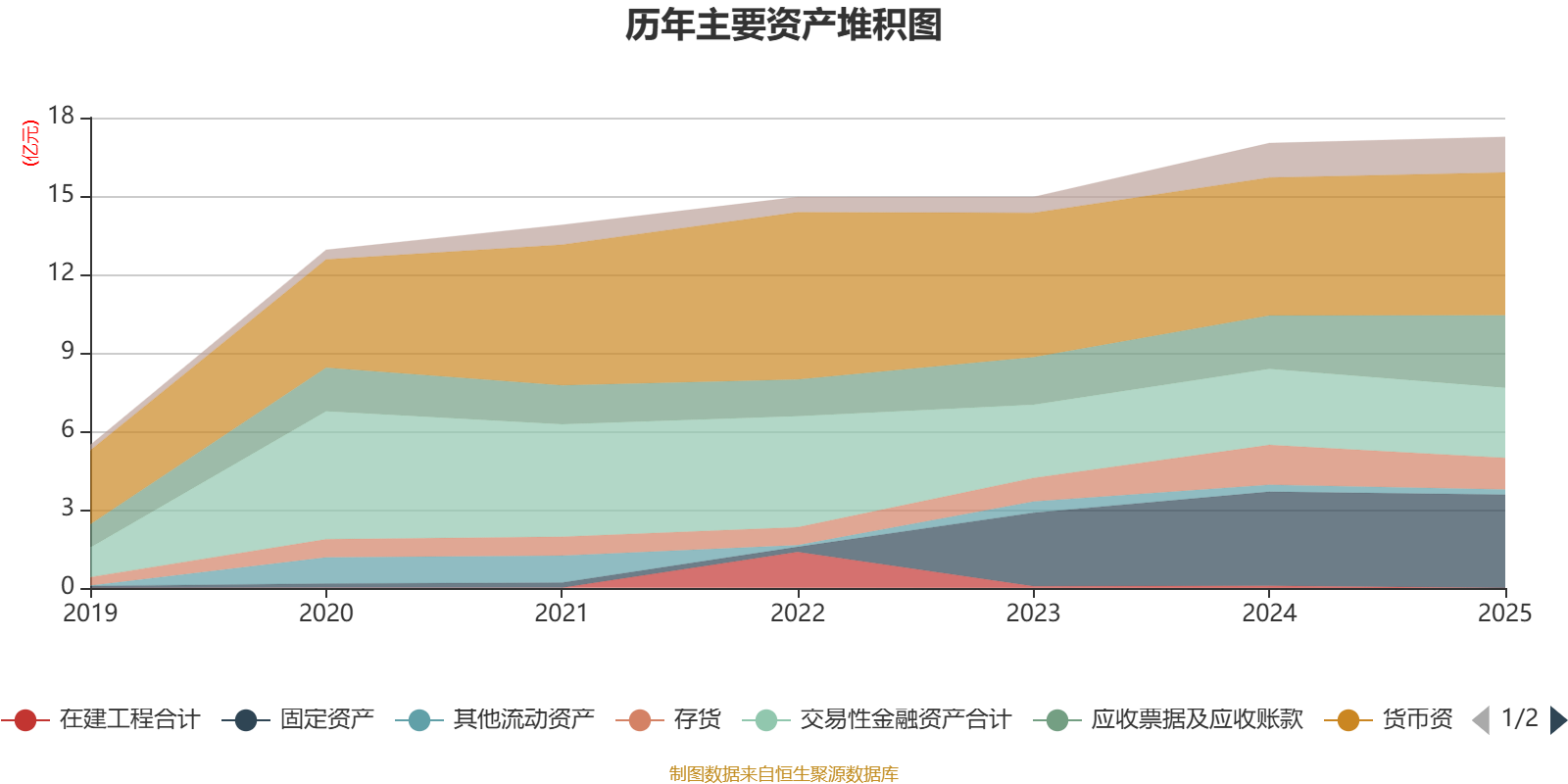 资产重大变化方面,截至2025年末,公司应收票据及应收账款较上年末增加35.81%,占公司总资产比重上升4.07个百分点;存货较上年末减少20.47%,占公司总资产比重下降1.93个百分点;交易性金融资产合计较上年末减少8.03%,占公司总资产比重下降1.59个百分点;货币资金较上年末增加3.66%,占公司总资产比重上升0.69个百分点。