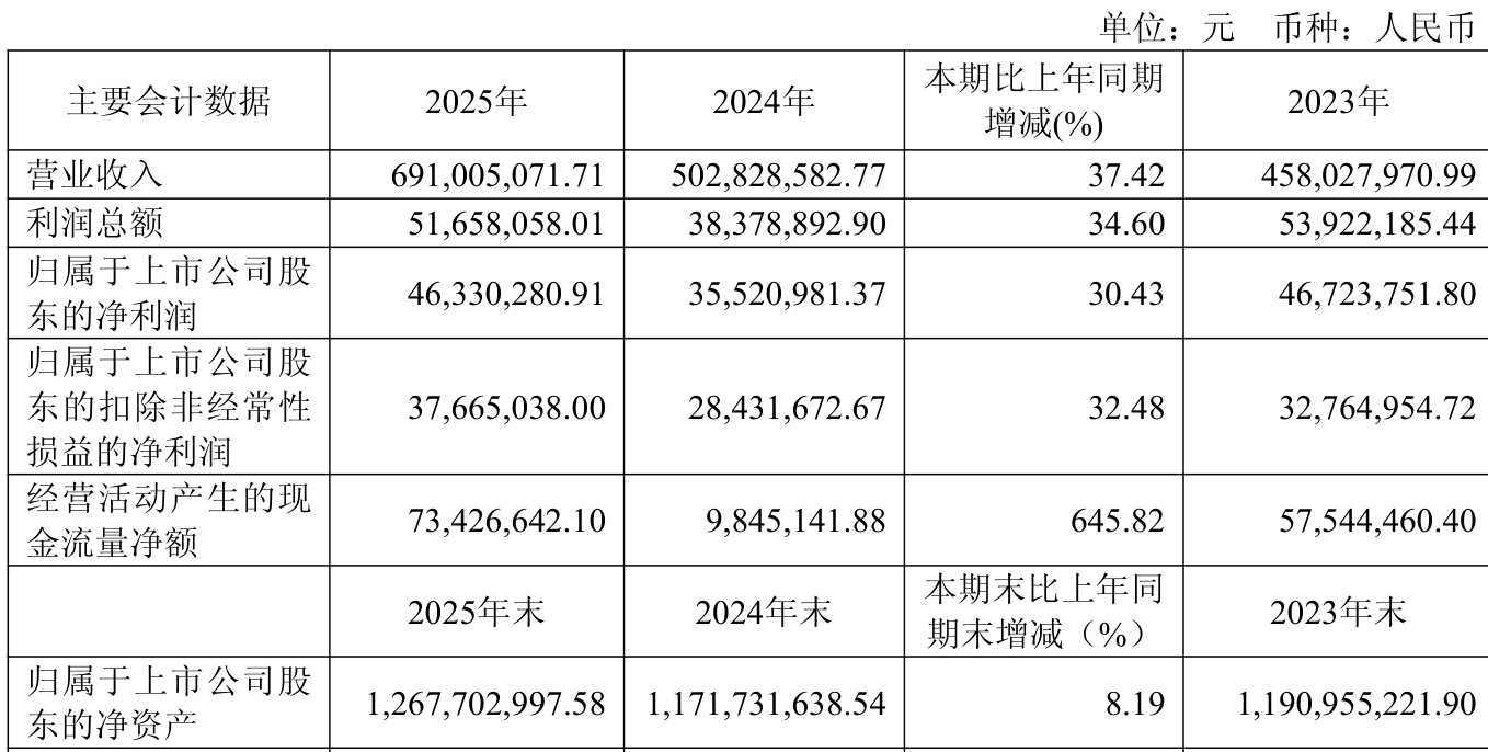 中证智能财讯茂莱光学(688502)4月11日披露2025年年度报告。2025年,公司实现营业总收入6.91亿元,同比增长37.42%;归母净利润4633.03万元,同比增长30.43%;扣非净利润3766.5万元,同比增长32.48%;经营活动产生的现金流量净额为7342.66万元,同比增长645.82%;报告期内,茂莱光学基本每股收益为0.88元,加权平均净资产收益率为3.88%。公司2025年度分配预案为:拟向全体股东每10股派现2.8元(含税)。