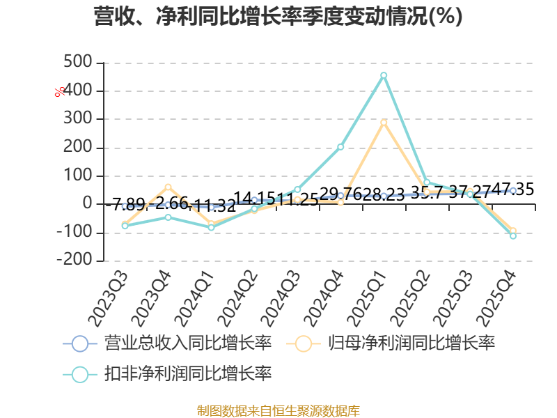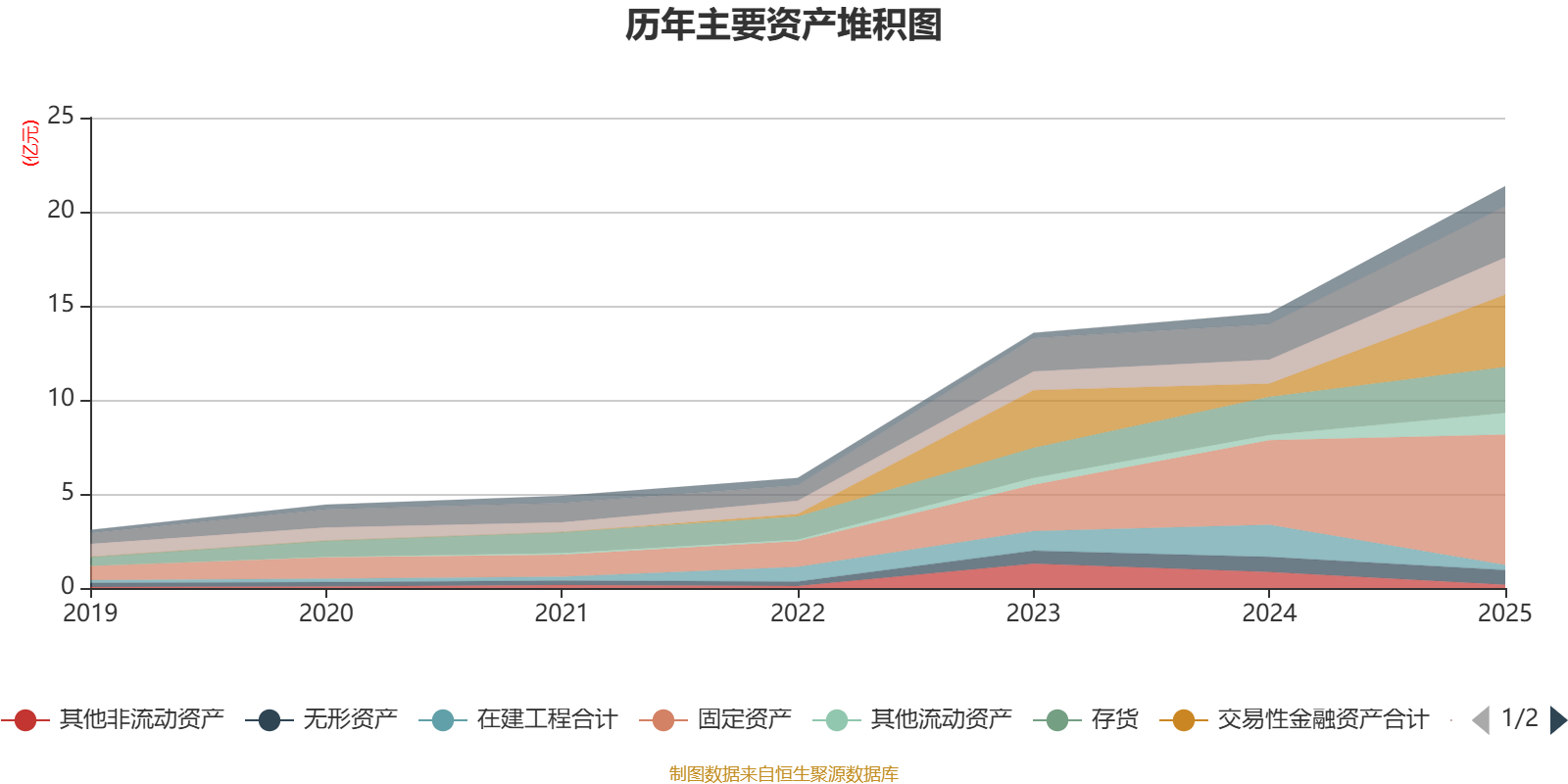 资产重大变化方面,截至2025年末,公司交易性金融资产合计较上年末增加441.55%,占公司总资产比重上升13.1个百分点;在建工程合计较上年末减少84.08%,占公司总资产比重下降10.39个百分点;其他非流动资产较上年末减少79.59%,占公司总资产比重下降5.02个百分点;其他流动资产较上年末增加322.75%,占公司总资产比重上升3.51个百分点。