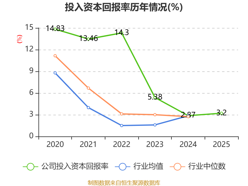 数据显示,2025年公司加权平均净资产收益率为3.88%,较上年同期上升0.86个百分点。公司2025年投入资本回报率为3.2%,较上年同期上升0.33个百分点。