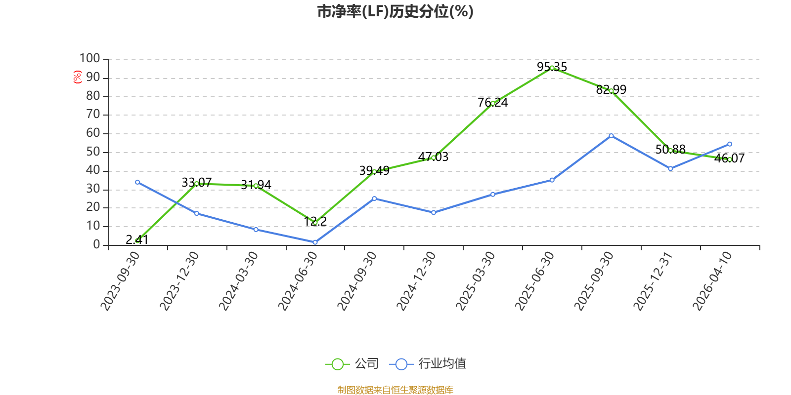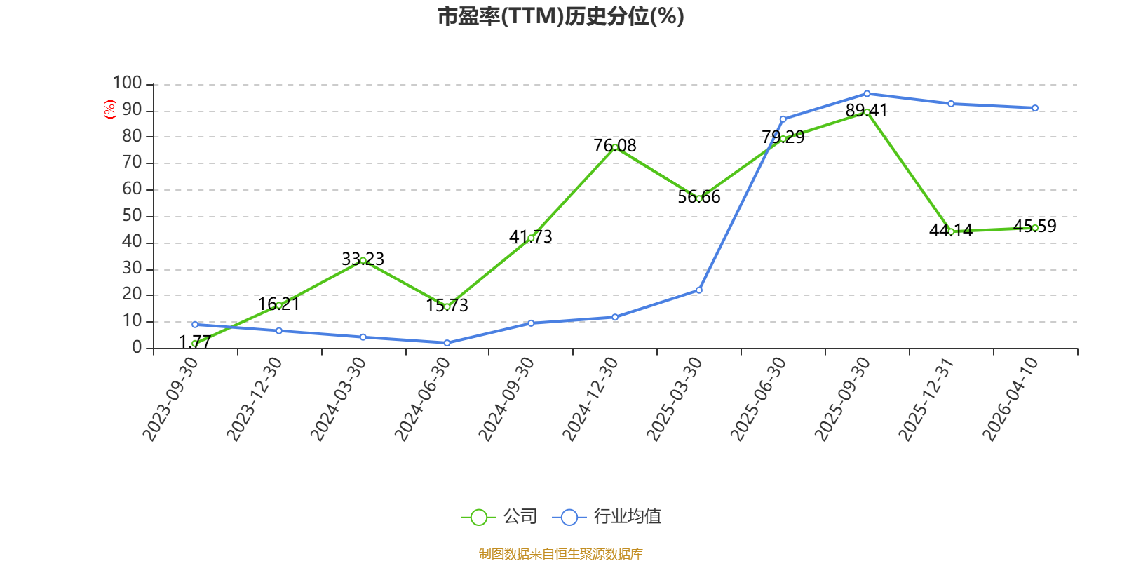 市盈率、市净率为负时,不显示当期分位数,会导致折线图中断。