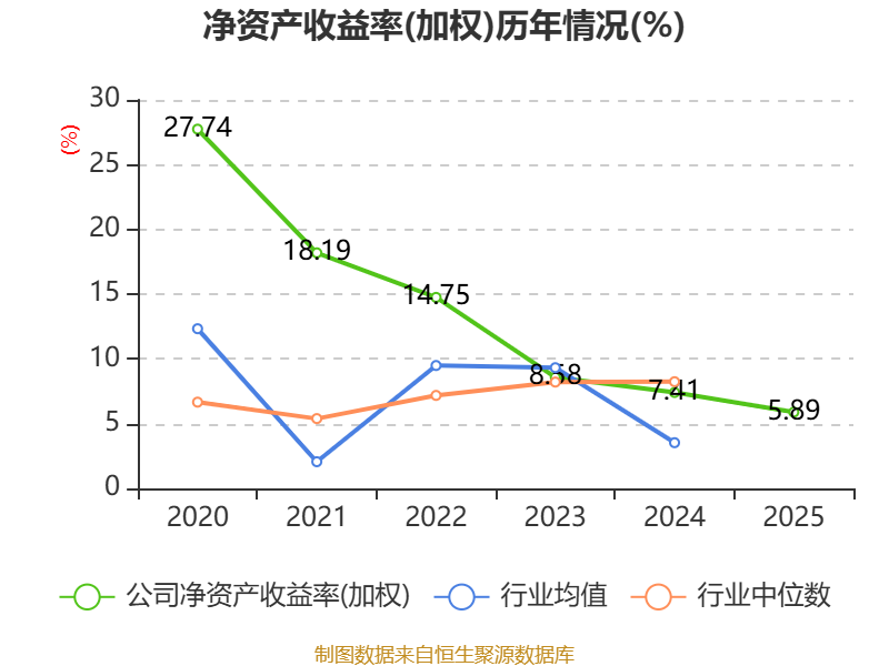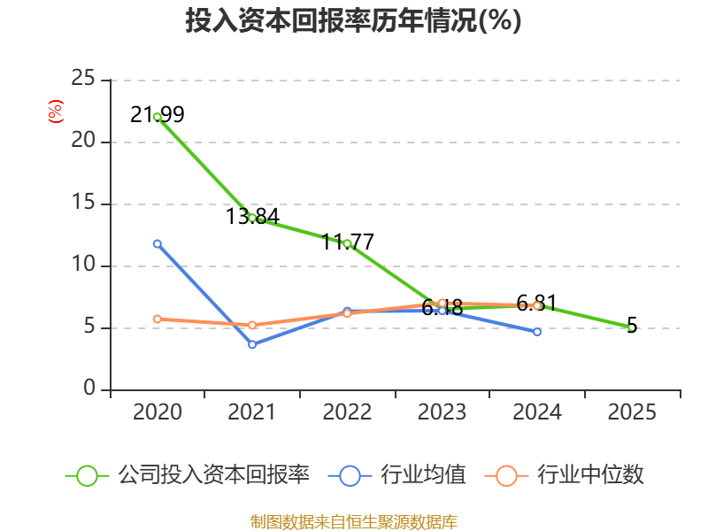 数据显示,2025年公司加权平均净资产收益率为5.89%,较上年同期下降1.52个百分点。公司2025年投入资本回报率为5%,较上年同期下降1.81个百分点。