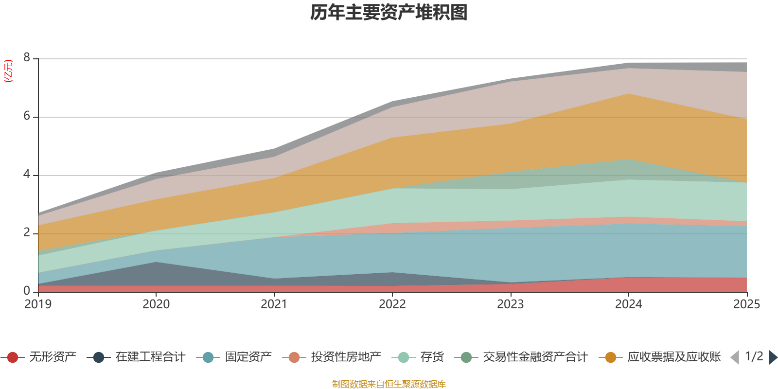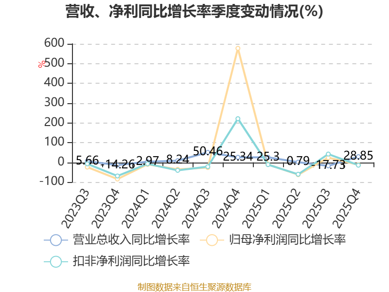 资产重大变化方面,截至2025年末,公司货币资金较上年末增加85.91%,占公司总资产比重上升9.51个百分点;交易性金融资产合计较上年末减少100%,占公司总资产比重下降8.94个百分点;预付款项较上年末增加288.87%,占公司总资产比重上升1.09个百分点;投资性房地产较上年末减少32.22%,占公司总资产比重下降0.98个百分点。