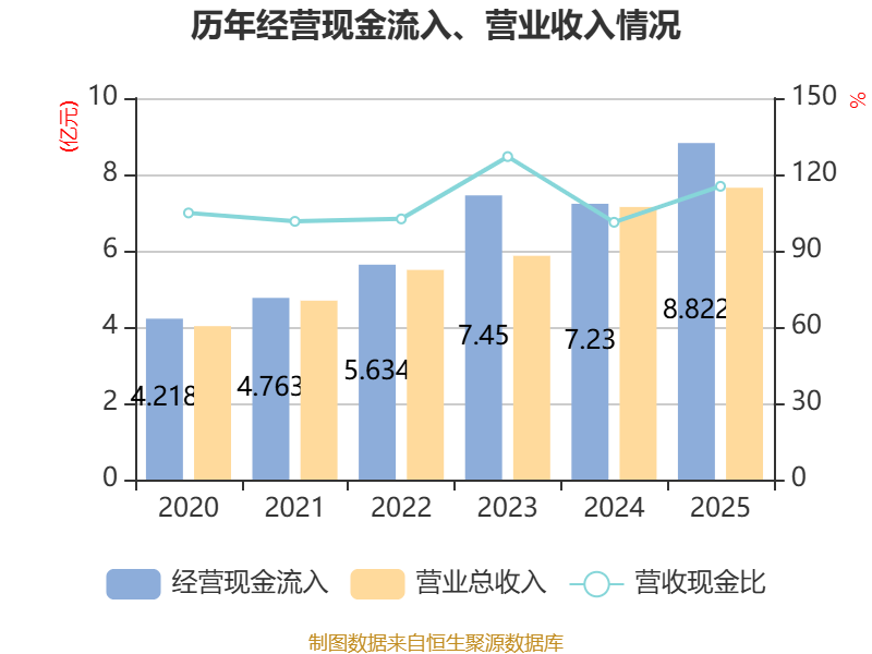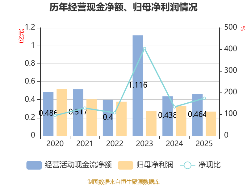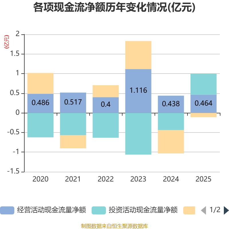 截至2025年,公司经营活动现金流净额为4642.25万元,同比增长6.11%;筹资活动现金流净额-1097.4万元,同比增加4841.71万元;投资活动现金流净额5307.97万元,上年同期为-4396.89万元。