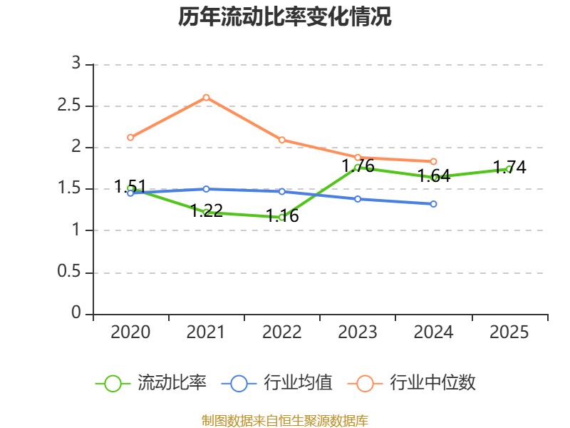 2025年,公司流动比率为1.74,速动比率为1.3。