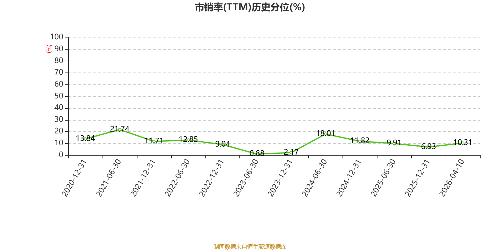 以4月10日收盘价计算,中国恒天立信国际目前市盈率(TTM)约87.71倍,市净率(TTM)约0.35倍,市销率(TTM)约0.17倍。