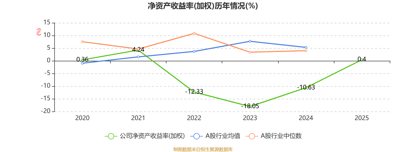 数据显示,2025年公司平均净资产收益率为0.4%,较上年同期上升11.03个百分点。