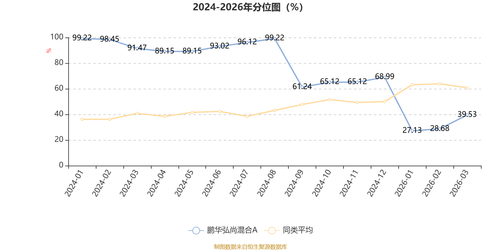 通过所选区间该基金净值增长率分位图,可以观察该基金与同类基金业绩比较情况。图为坐标原点到区间内某时点的净值增长率在同类基金中的分位数。
