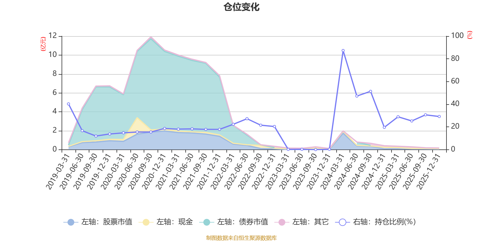 据定期报告数据统计,近三年平均股票仓位为26.68%,同类平均为72.57%。2024年一季度末基金达到87.33%的最高仓位,2023年一季度末最低,为0.18%。