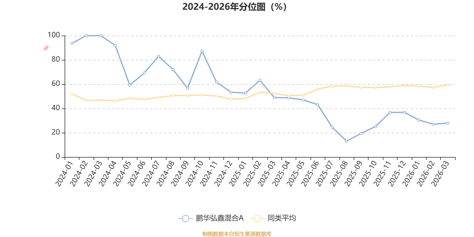 通过所选区间该基金净值增长率分位图,可以观察该基金与同类基金业绩比较情况。图为坐标原点到区间内某时点的净值增长率在同类基金中的分位数。