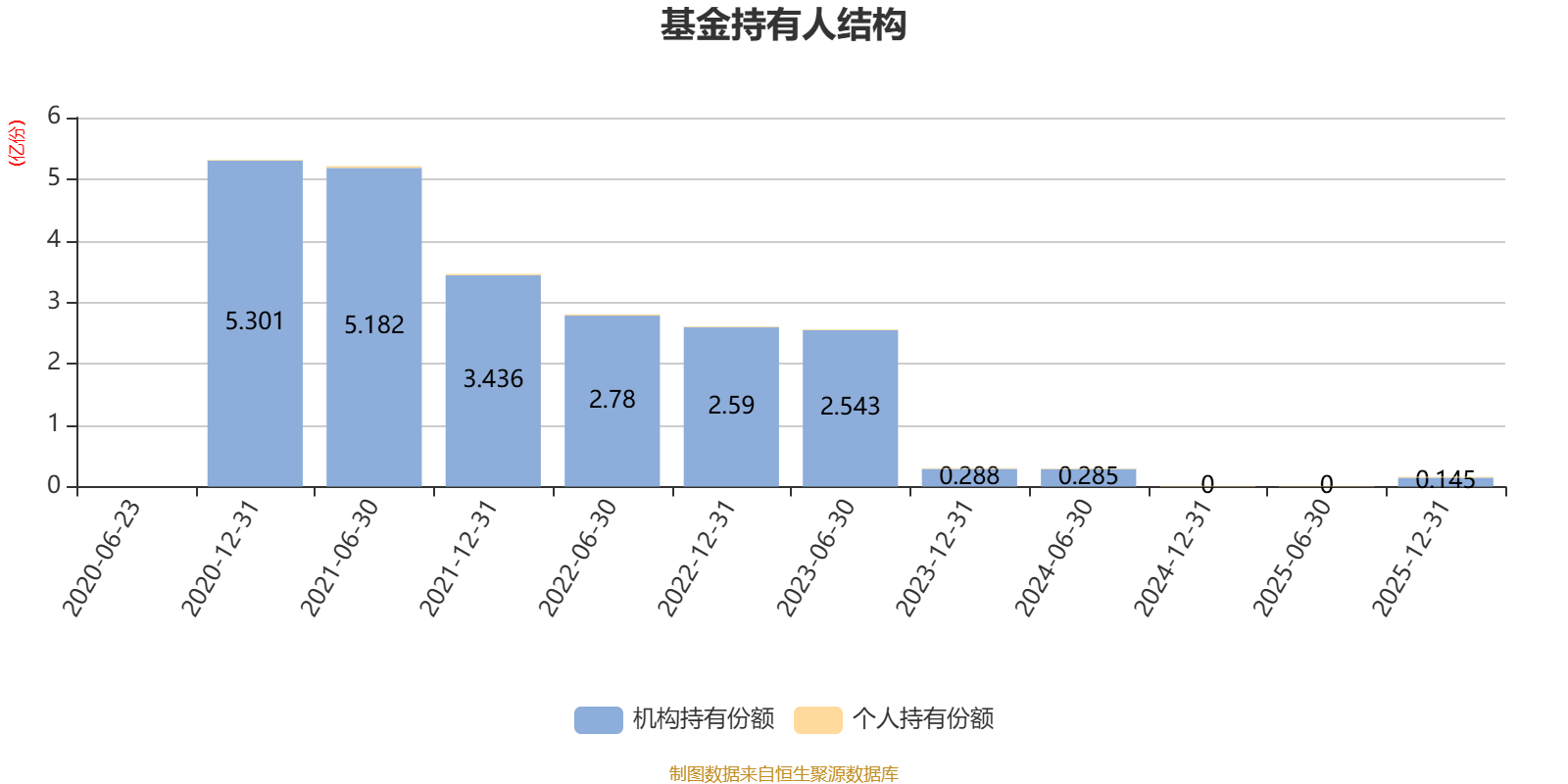 截至2025年12月31日,基金持有人共计275户,合计持有1591.7万份。其中管理人员工持有1.62万份,占比0.10%,机构持有份额占比91.07%,个人投资者占比8.93%。