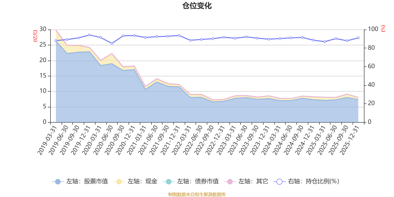 据定期报告数据统计,近三年平均股票仓位为90.05%,同类平均为86.12%。2019年末基金达到94.13%的最高仓位,2020年上半年末最低,为85.06%。