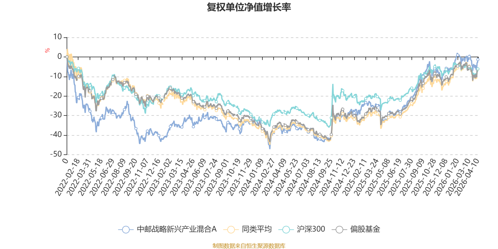 截至4月10日,中邮战略新兴产业混合A近三个月复权单位净值增长率为1.07%,位于同类可比基金114/265;近半年复权单位净值增长率为3.36%,位于同类可比基金138/265;近一年复权单位净值增长率为46.45%,位于同类可比基金97/265;近三年复权单位净值增长率为44.49%,位于同类可比基金38/261。