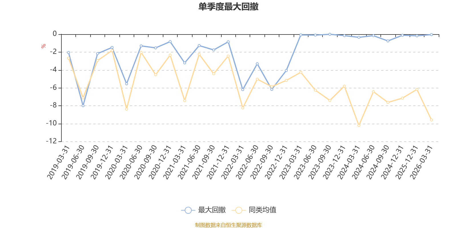 截至4月9日,基金近三年最大回撤为0.75%,同类可比基金排名1/115。单季度最大回撤出现在2019年二季度,为8%。