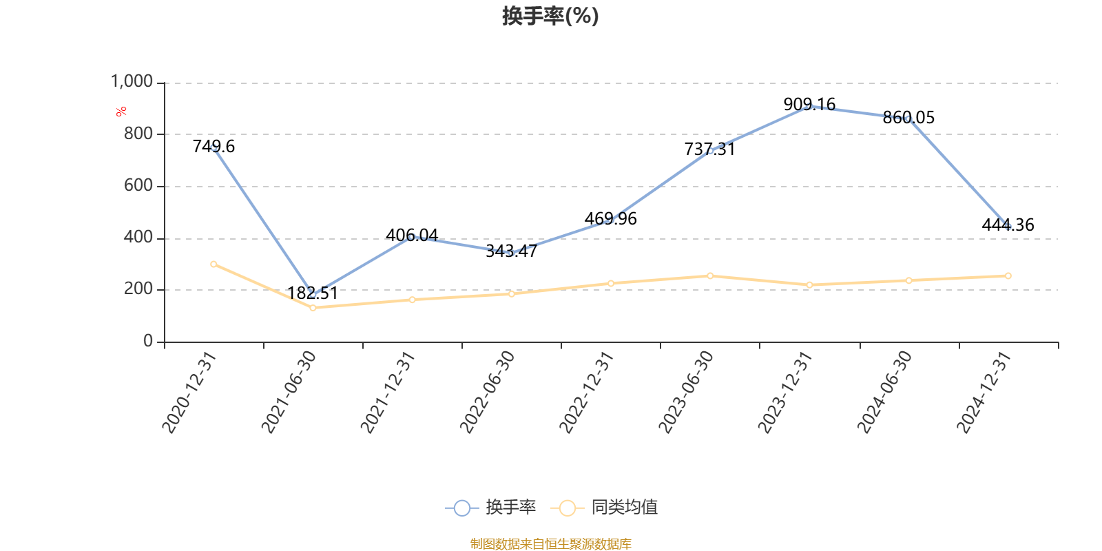 截至2025年12月31日,基金最近一年换手率约182.09%,持续高于同类均值。