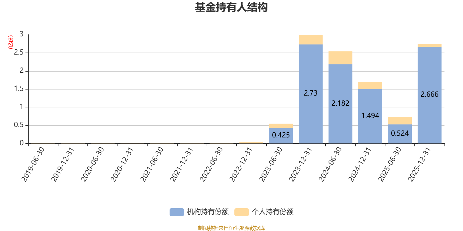 截至2025年12月31日,基金持有人共计1088户,合计持有2.74亿份。其中管理人员工持有996.93份,机构持有份额占比97.14%,个人投资者占比2.86%。