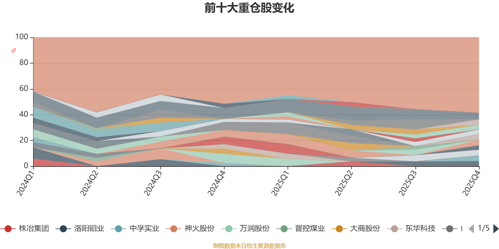 截至2025年末,基金十大重仓股分别是紫金矿业、江西铜业、藏格矿业、盛屯矿业、中孚实业、大中矿业、洛阳钼业、华友钴业、云铝股份、永兴材料。