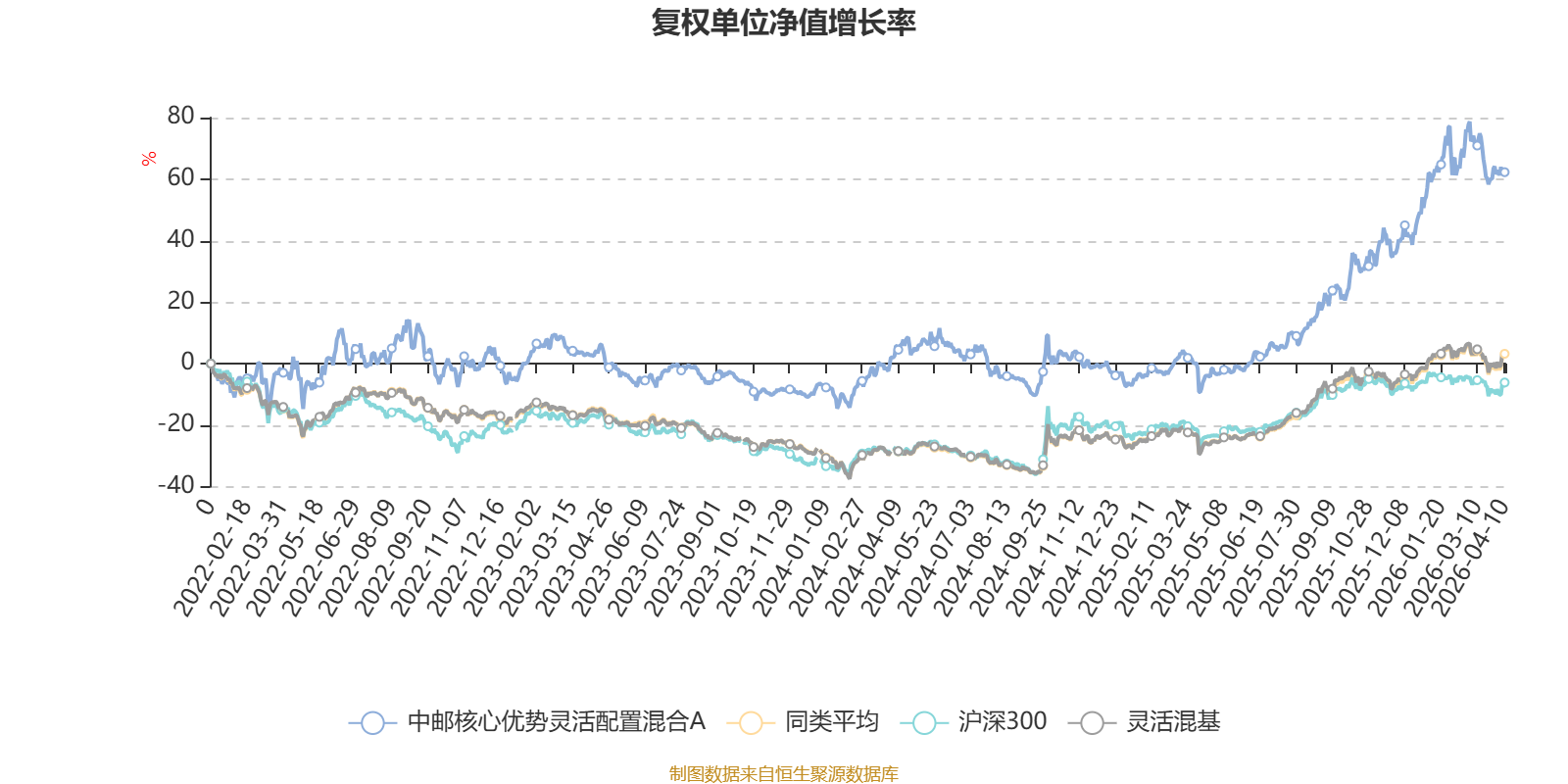 AI基金中邮核心优势灵活配置混合A(590003)披露2025年年报,2025年基金利润4.72亿元,加权平均基金份额本期利润0.9414元。报告期内,基金净值增长率为61.7%,截至2025年末,基金规模为10.86亿元。
